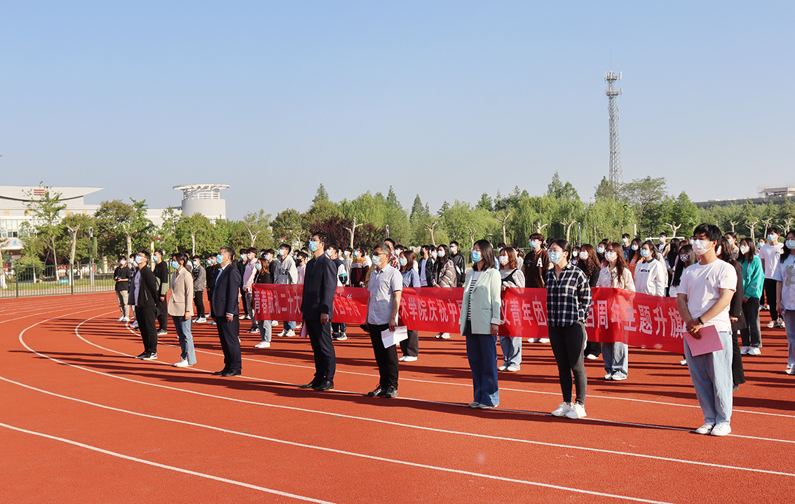 5月4日,应用技术学院在运动场隆重举行“青春献礼二十大,五四薪火百年传”五四青年节主题升国旗仪式。学院党委书记赵求勇、党委副书记时树奎,辅导员、团员青年代表参与了本次活动。