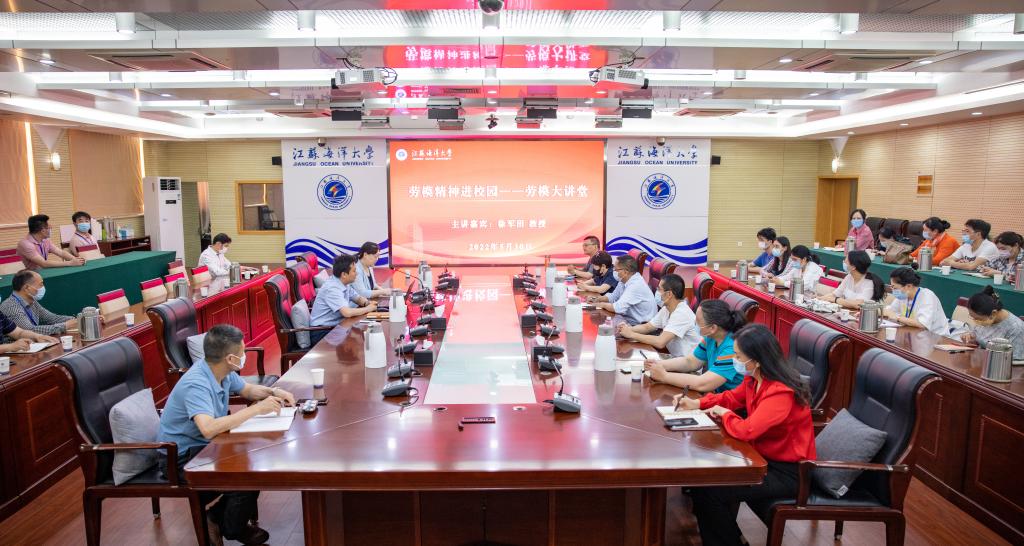 为充分发挥劳模先进典型的引领作用,5月30日下午,校工会在会议中心东海厅举办了“劳模精神进校园—劳模大讲堂”。本次大讲堂邀请到海洋科学与水产学院院长、教授,博士生导师、连云港市“十大杰出青年”“连云港市劳动模范”徐军田为大家做事迹宣讲,各分工会主席、委员以及青年教师代表40余人参加会议。