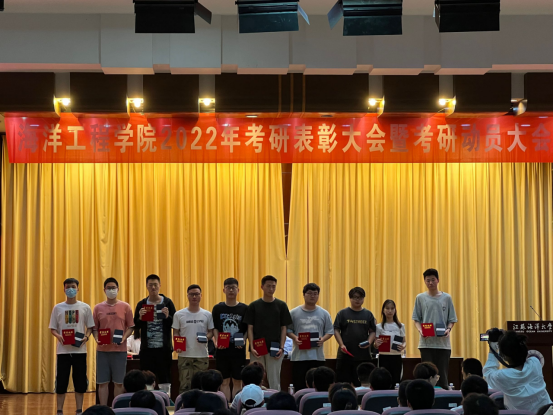 朱甜甜宣读2022年考研录取学生名单,由各位领导和嘉宾颁奖。学院2022年考研成绩喜人,考研录取率达33.33%,其中“双一流”高校共录取14人,占比63.64%,其中包括:华中科技大学2人、中国海洋大学3人、武汉理工大学4人、哈尔滨工程大学3人、贵州大学1人、大连海事大学1人。