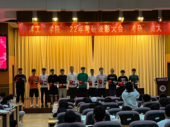 为表彰优秀考研学子,激发学生的考研积极性和主动性,引导学生树立正确考研目标,6月6日晚,海洋工程学院在文博楼报告厅举行了2022年考研表彰大会暨考研动员大会。学院党总支书记唐正康、副书记王海、文都考研负责人王赛、辅导员朱甜甜出席了本次会议,本届考取研究生的22名毕业生以及全体大三学生参加了会议,会议由朱甜甜主持。