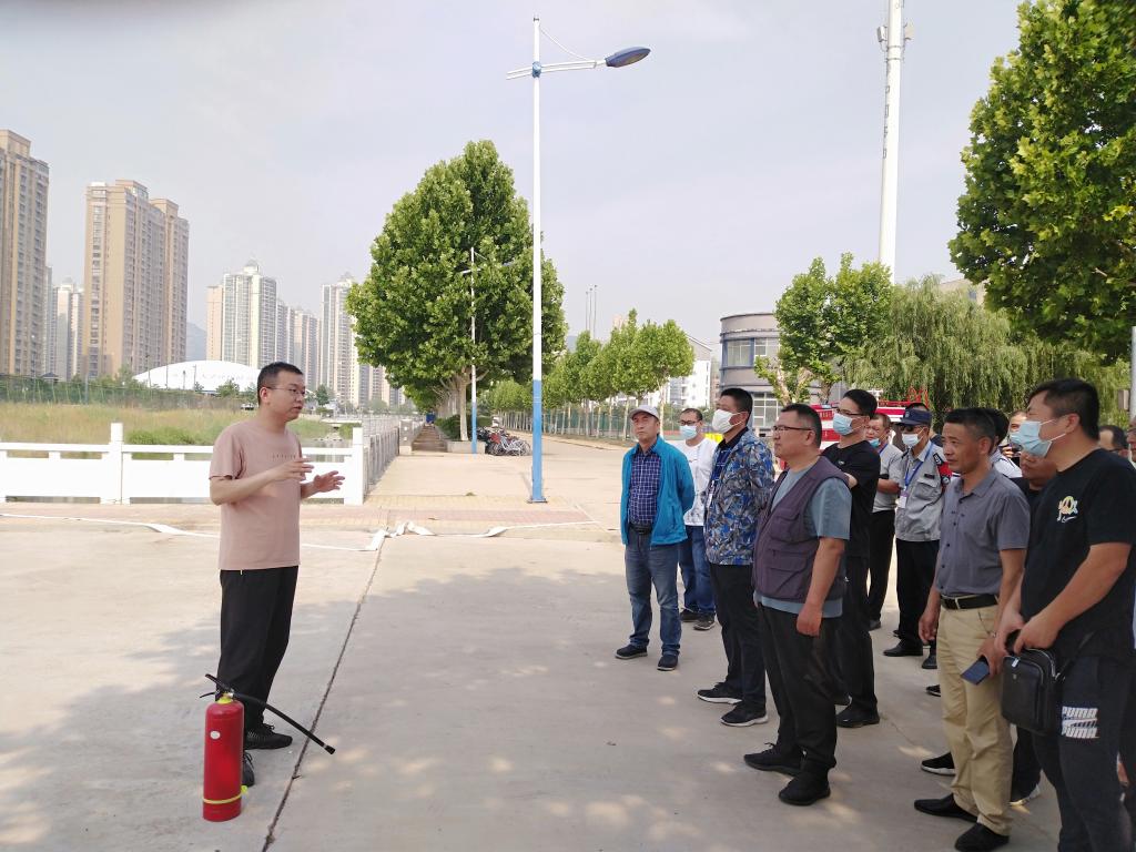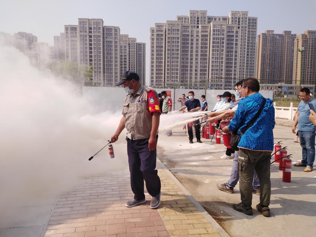现场演练,工作人员详细介绍了消防知识、灭火器的类型、使用范围及操作方法,并就如何使用灭火器进行现场演示。