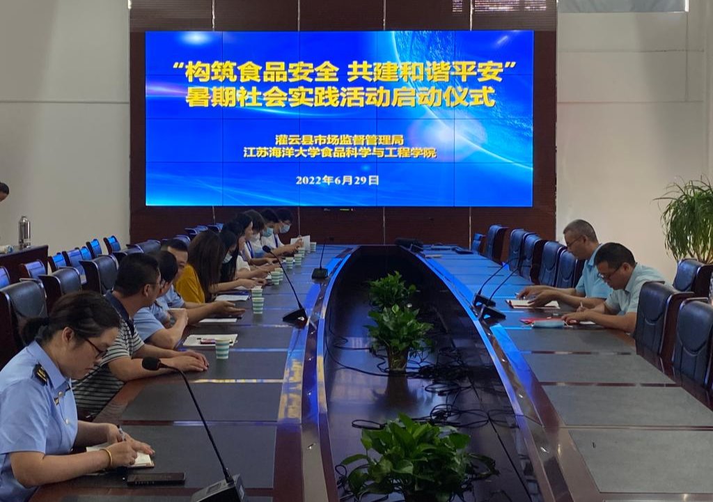 6月29日上午,食品科学与工程学院在灌云县市场监督管理局会议厅举办“构筑食品安全 共建和谐平安”暑期社会实践启动仪式。食品科学与工程学院党总支副书记郭利、灌云县市场监督管理局(知识产权局)副局长刘祥出席活动。