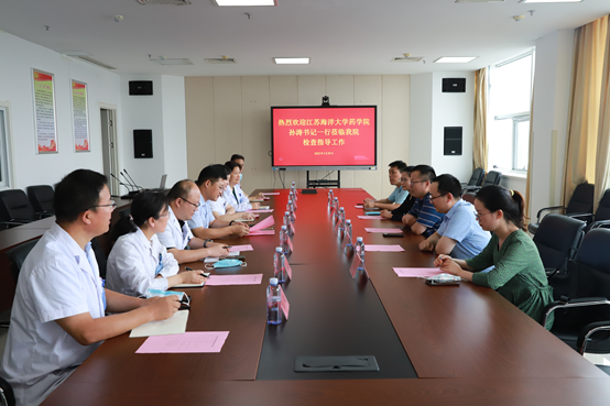 7月29日下午,药学院党总支书记孙涛一行至连云港市赣榆区人民医院进行调研合作。赣榆区人民医院党委书记、院长万延峦主持会谈交流,科教科、检验科和临床药学室等相关科室领导参加了此次座谈。