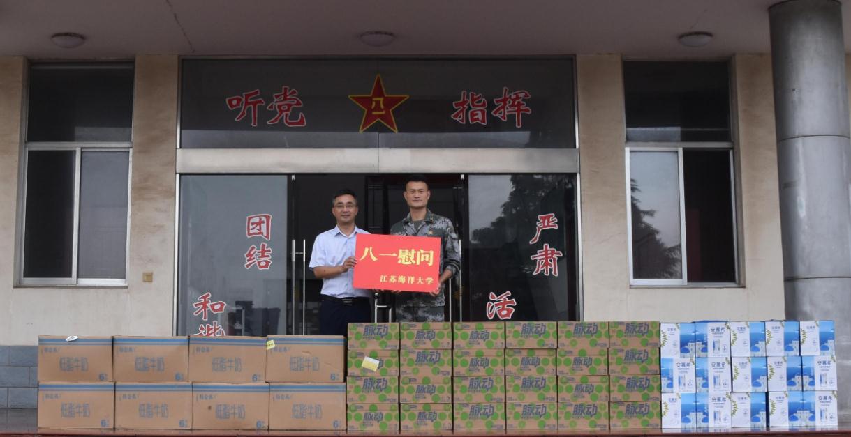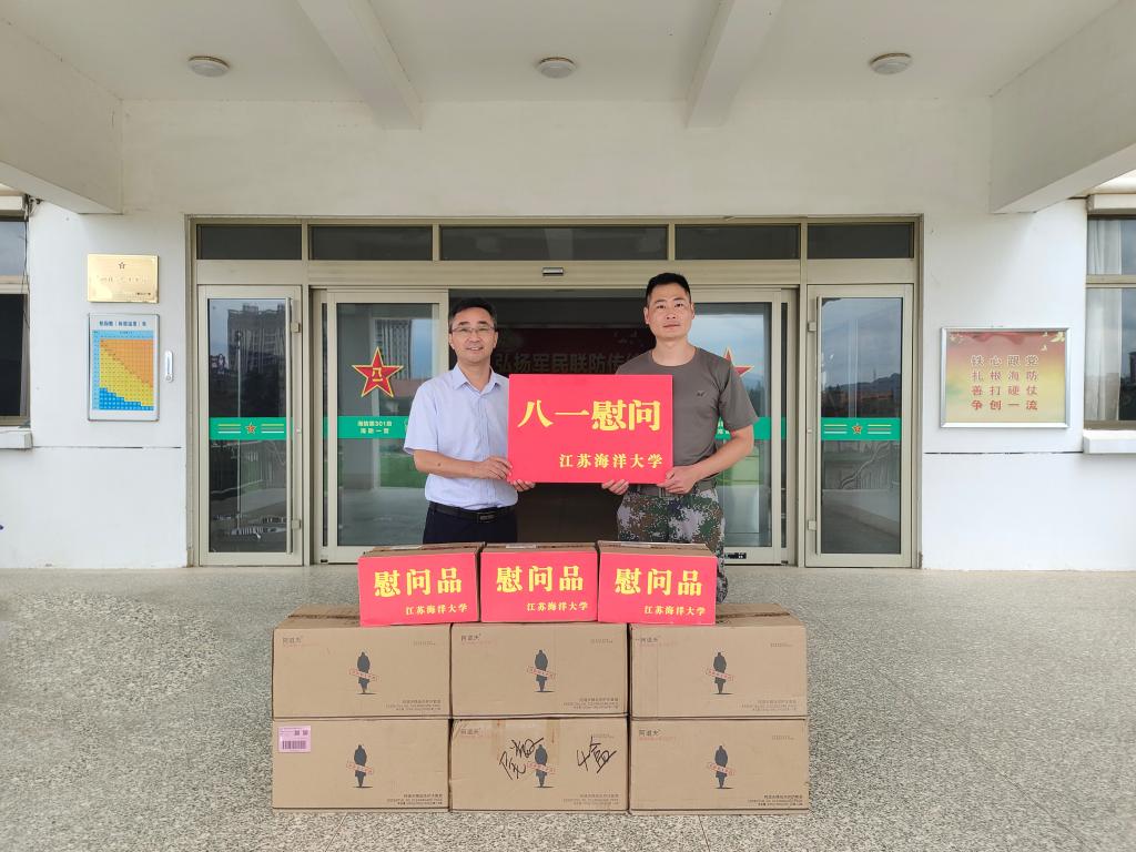 为不断强化国防观念和爱国强军意识,7月31日,正值中国人民解放军建军95周年之际,校人民武装部部长陈德翼、副部长张志浩一行前往连云港警备区、连云港武警支队、31609部队某分队进行走访慰问,为广大官兵送去诚挚的问候和节日的祝福,并送去慰问品。