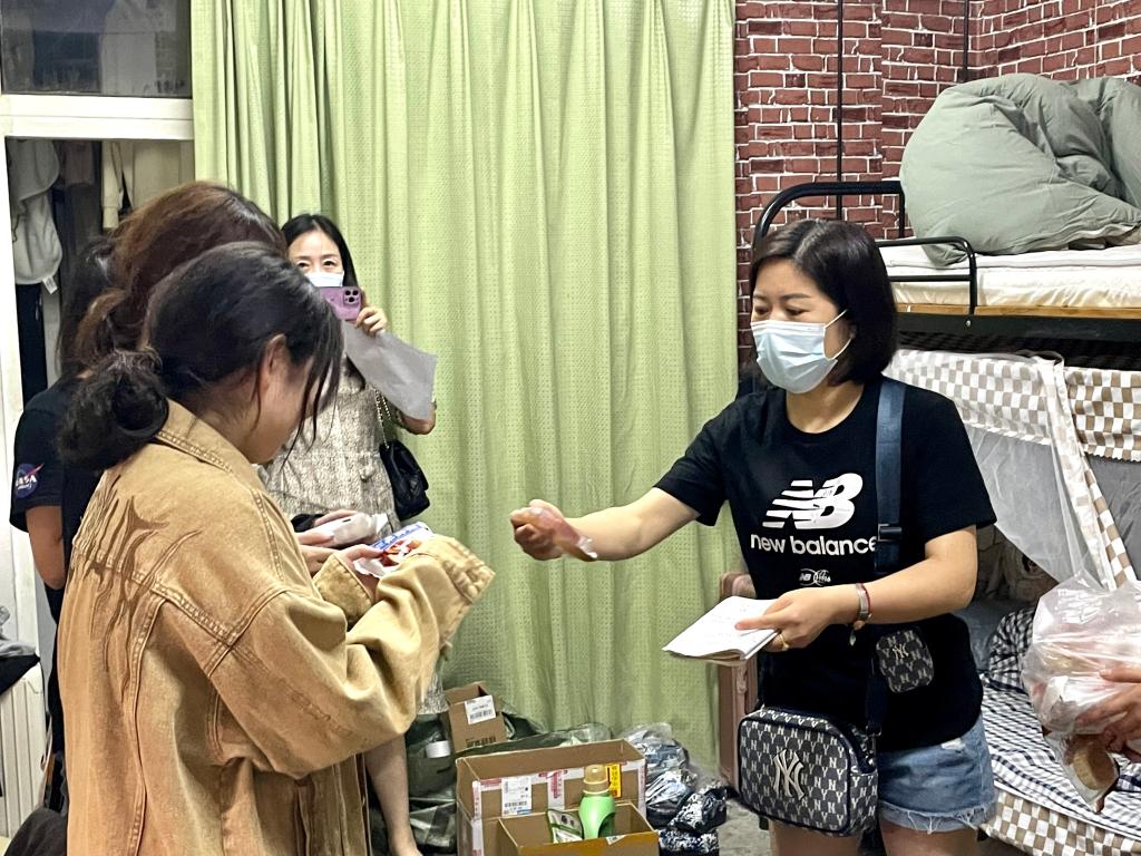 在新生女生寝室,赵晶辉、严红花、新生班主任和辅导员一行人与新生们亲切交谈,详细了解新生报到后在校情况。叮嘱同学们要及时休整,加强安全防范。在慰问过程中,一位女同学的书桌上摆放了许多名著和外文书籍,经了解,这名同学对语言和书法绘画十分感兴趣。赵晶辉亲切表示:“希望能跟她一起共同探讨文学问题,鼓励大家认真学习,学院和老师们都对我们22级新生寄予殷切厚望。”在与新生交谈过程中,书记和院长都十分鼓励同学们发展自己的兴趣。各新生班主任挨个走访本班级宿舍,与每位同学认识、交流,班主任们夸奖了女生宿舍干净整洁,男生宿舍需要养成良好的生活习惯,鼓励舍友之间多多交流,互相促进学习,遇到生活学习上的困难,随时都可以找班主任老师们协调解决。