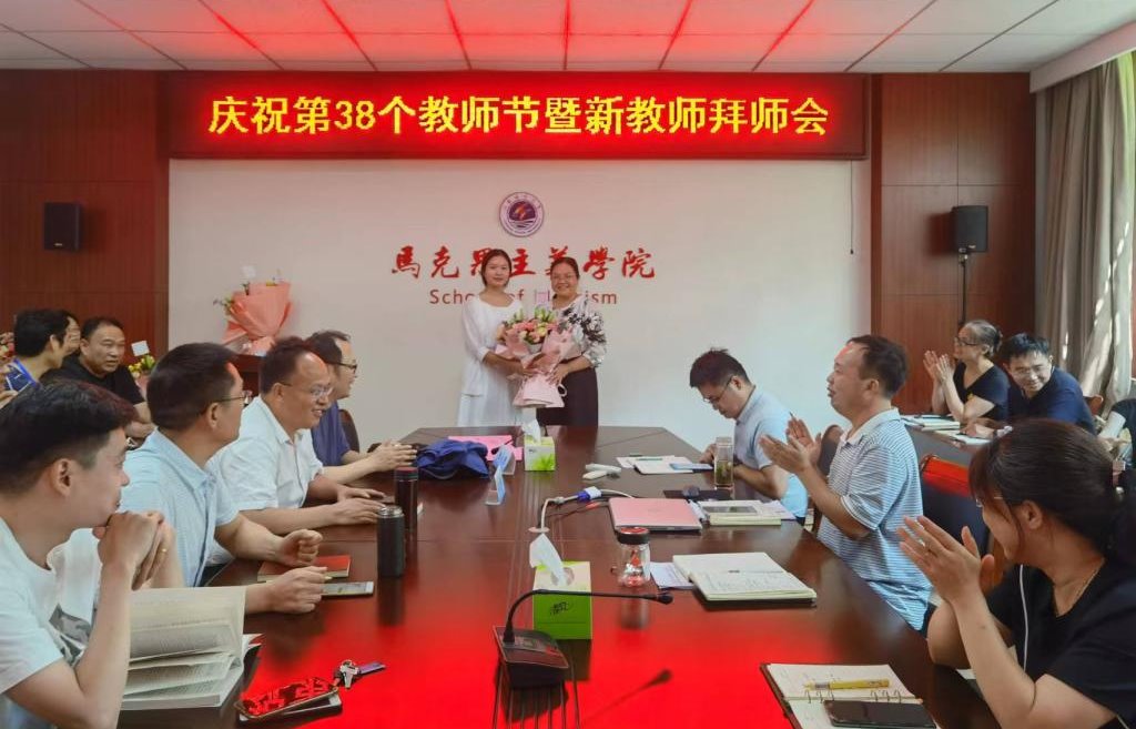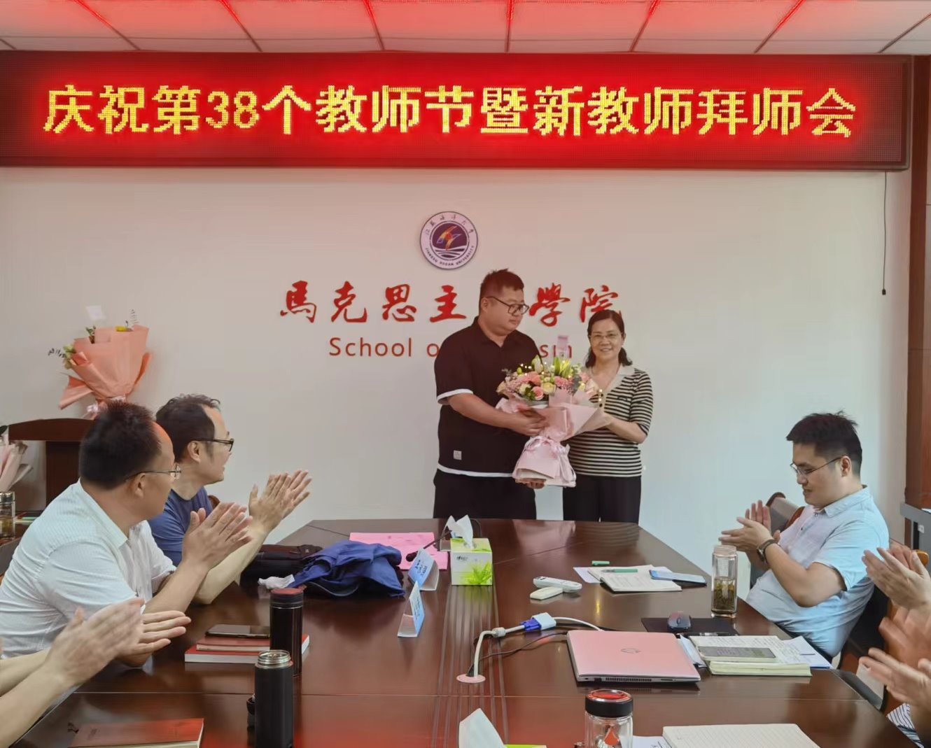 金秋送爽,丹桂飘香,为弘扬中华民族尊师重教的传统美德,激励广大教职工热爱教育事业,9月7日下午,在教师节前夕,马克思主义学院举行了“庆祝第38个教师节暨新教师拜师会”,学院全体教职工参加了本次会议,会议由王波书记主持。