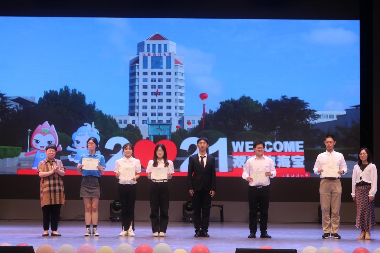 获得一等奖的朗诵作品的分别是:十七号创新创业学院《回首一百年,致敬共产党》、七号艺术设计学院《我是廉政》,由朱卫文、曹兴娣主席进行颁奖。