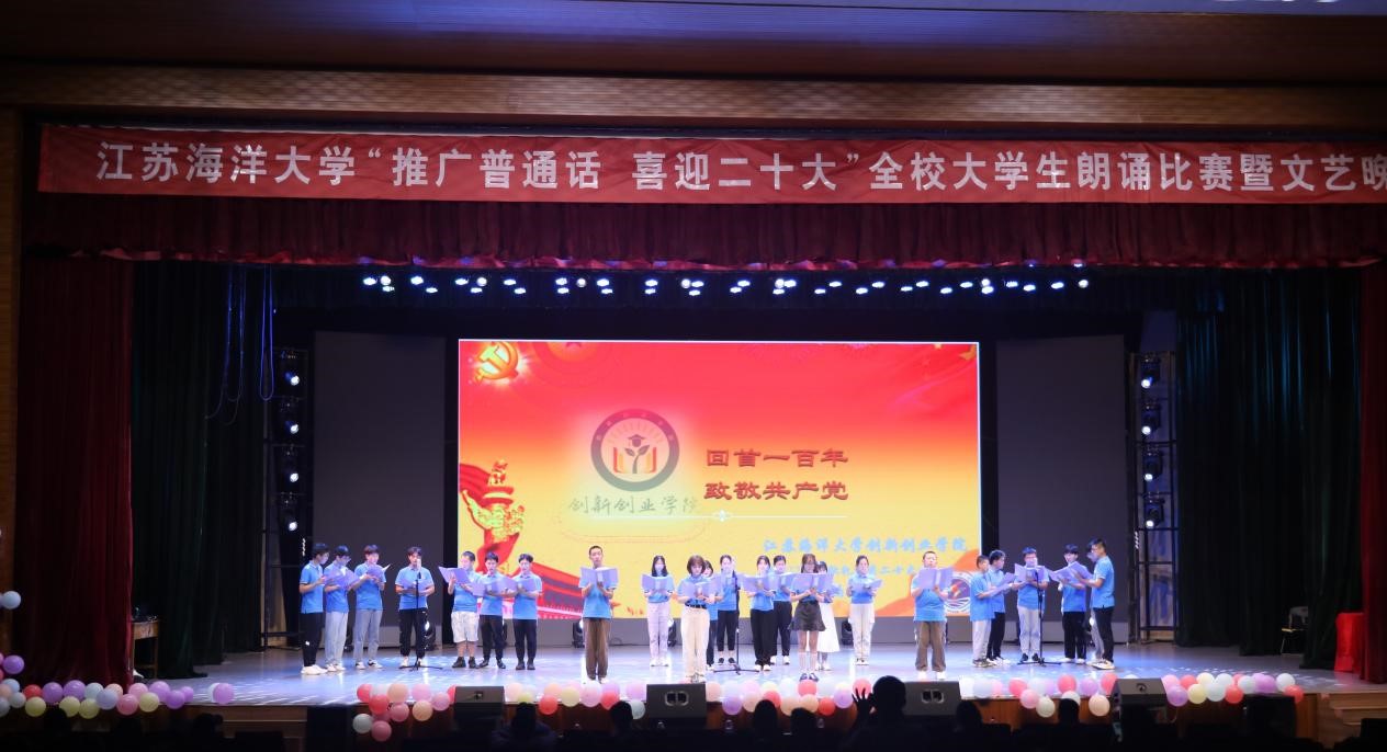 为充分展示我国推普周举办25年来的显著成绩,更好的迎接党的二十大胜利召开,响应国家推广普通话的号召,时值第25届推广普通话活动周,9月17日晚7时,由我校教务处主办、文法学院承办的“推广普通话,喜迎二十大”大学生朗诵比赛于苍梧校区大礼堂隆重举行。文法学院院长吴明忠、党委副书记王国银、连云港市教育局语言文字工作委员会主席朱卫文、连云港市海州区文联主席曹兴娣、党委宣传部副部长陈晓艳、新闻广告系教授班允凤、中文系主任宫肇南等出席本次活动。