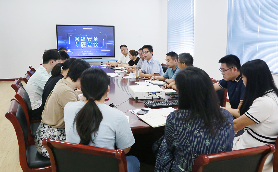 为贯彻落实习近平网络强国战略思想,提高网络安全思想意识,强化网络安全风险意识和防范意识,压实网络安全责任,维护校园安全稳定,为党的二十大胜利召开营造良好氛围。9月16日,应用技术学院在厚德楼206召开网络安全工作专题会议,学院领导、党委委员、党支部书记、各科室负责人以及全体辅导员参加会议,学院党委书记赵求勇主持会议。