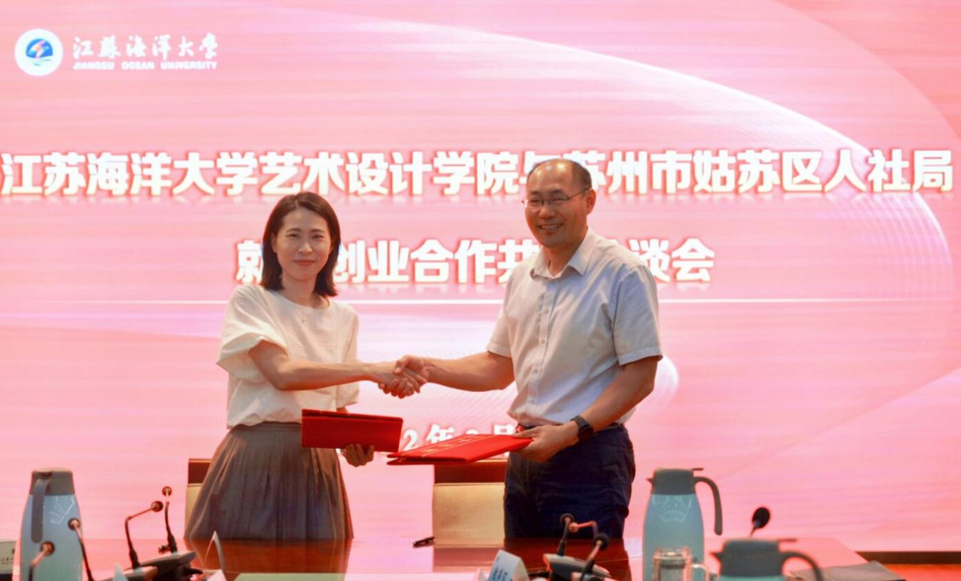 薛梅介绍了姑苏区人社工作情况。她表示,作为全国首个国家历史文化名城保护区,姑苏区一贯重视文旅资源开发、文创产业扶持,具备良好的就业创业环境,姑苏区建立了一系列人才扶持政策与平台、设立“青年就业特快专列”,并与苏州当地高校一直保持有紧密的合作关系。薛梅表示,江苏海洋大学艺术设计学院专业设置、产学研能力与姑苏区的发展定位较为契合,她希望双方在政校企合作、全链式就业体系完善、企业参与学校教学资源配置等方面加强合作。苏州市姑苏区沧浪街道副书记孙远介绍了街道基本情况和在文化创意项目推进、就业创业情况等方面的情况。