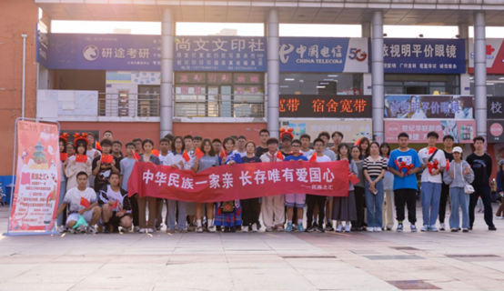 10月1日下午3时,民族之汇于苍梧校区三食堂门前广场举办了主题为“喜迎二十大,欢度国庆”特别活动,各族学生参与活动,以赤诚爱国心祝福祖国,以真挚爱国行致敬祖国。