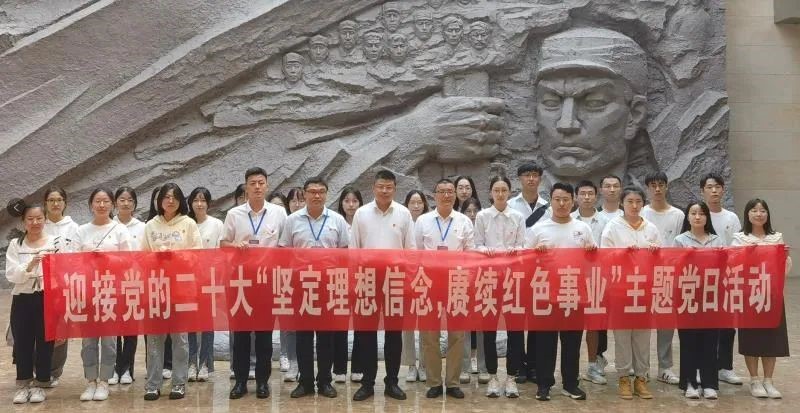 在庆祝新中国73华诞和党的二十大胜利召开之际,商学院学生第三党支部在连云港市革命纪念馆举行了“坚定理想信念,赓续红色事业”主题党日活动。副校长朱国军、商学院党委副书记王智金和支部全体党员、入党积极分子代表共同参加了活动。