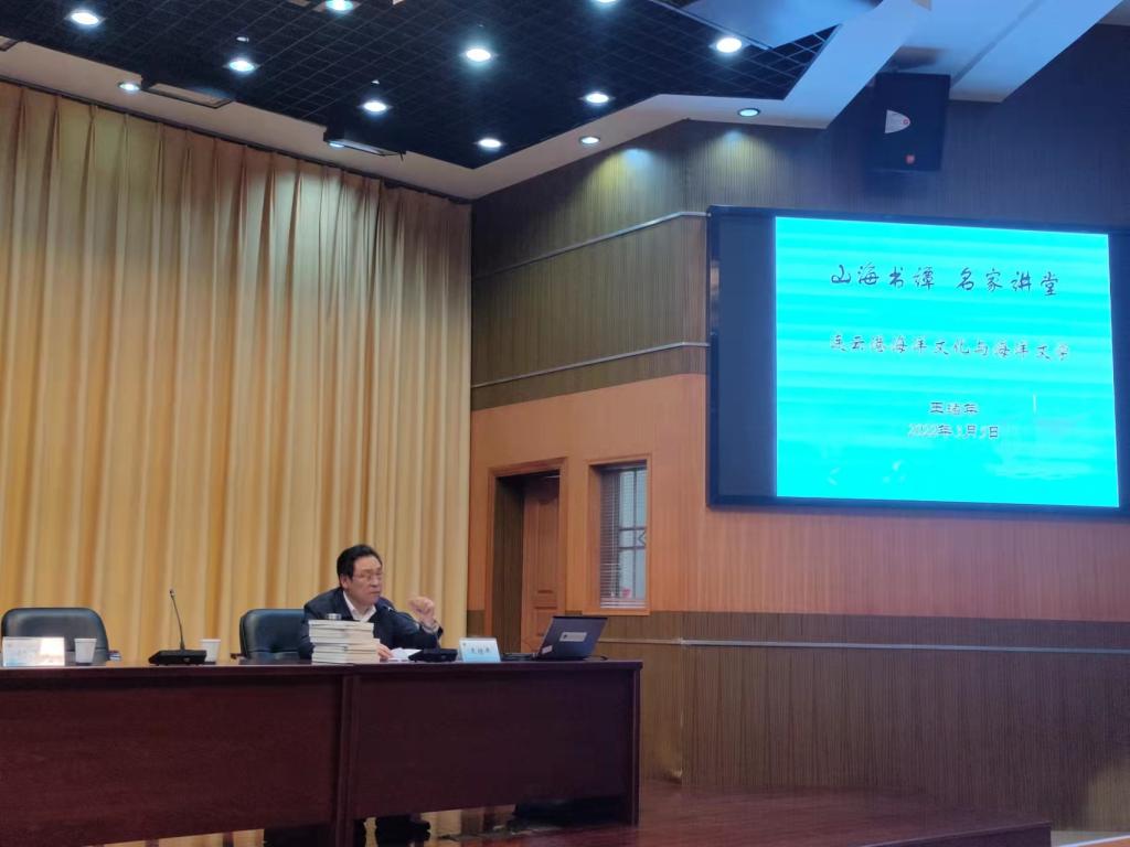 报告人原连云港日报社副社长、苍梧晚报社总编辑王绪年先生围绕连云港海洋文化的历史、构成、影响、海洋文学的形成、自己的文学梦等多方面多角度,用风趣幽默的语言回味了中华文明2000多年精彩纷呈的海洋文化,生动讲述了中国四大古典名著与连云港海洋文化的关系,娓娓道来连云港关于海的故事有多美,海洋文化有多厚重,博得现场师生的阵阵喝彩。师生们表表示,将利用闲暇时光多去实地感受以增长学术见识,激励自己更好地投入学业中去。