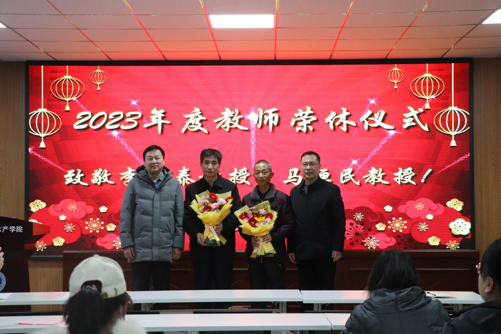 仪式上,院党委书记黄金虎、院长徐军田为两位老师献花,感谢他们为学校教育事业做出的努力和贡献。主持人郑伟、高迎莉两位老师带领大家一起回顾了两位教授的从教履历和精彩人生。教师代表廖江华、李士虎分享了他们与马恒民教授共事的经历和感人故事,表达了对马恒民教授的崇敬之情;张利民老师从尊师重教、关心同志、爱护学生、涵养家风等回忆了李联泰教授的工作和生活点滴。两位荣休老师先后做了退休感言,感谢学院领导和同事们多年来的支持和照顾,表达了感激、不舍以及祝福之情。