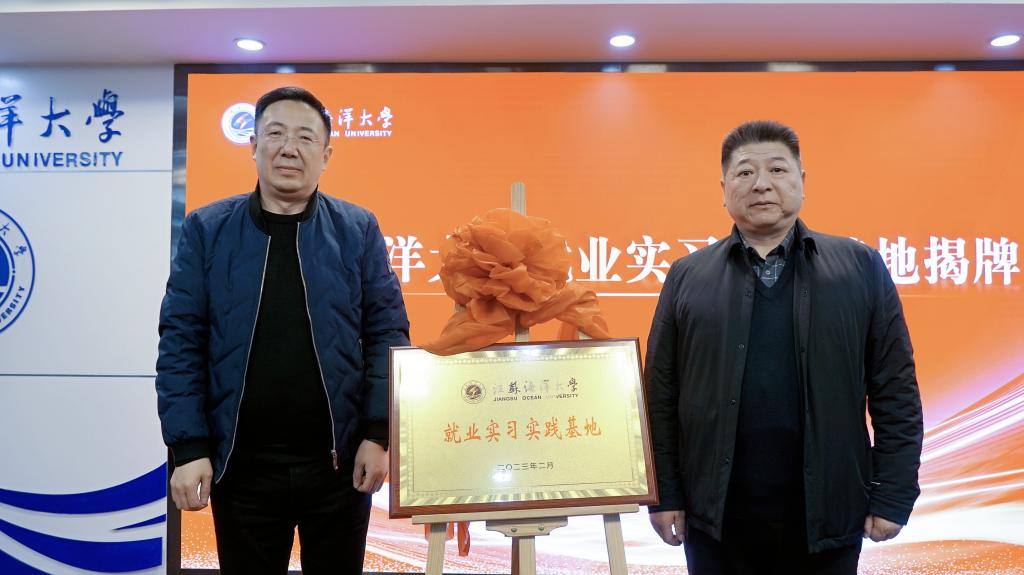 骆海宏和钟晓卫为江苏海洋大学就业实习实践基地揭牌