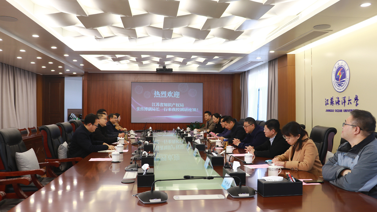 3月1日上午,江苏省知识产权局副局长张传博、连云港市市场监督管理局副局长陈波、马盈一行8人来我校调研,了解我校承担的江苏省高价值专利培育项目开展情况以及江苏省知识产权培训(江苏海洋大学)基地的建设及运行情况。副校长申欣出席并主持调研座谈会。