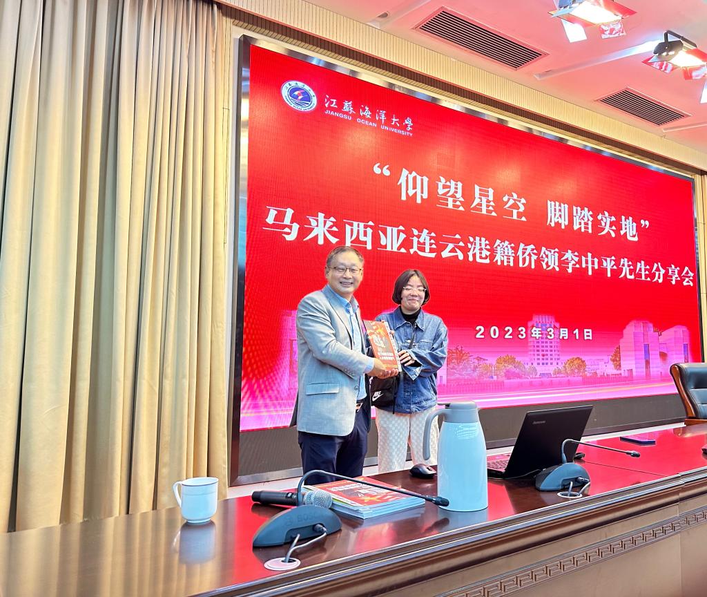 李中平对我校的热情接待表示感谢,并表示连云港是其家乡,从少年求学期间就了解了原淮海工学院、现在的江苏海洋大学,今天能够来到江苏海洋大学访问交流感到非常亲切。李中平表示作为连云港籍海外华侨,非常乐意为家乡的教育事业发展做出贡献,希望今后能在促成江苏海洋大学与马来西亚高校友好交流合作方面贡献一份力量。