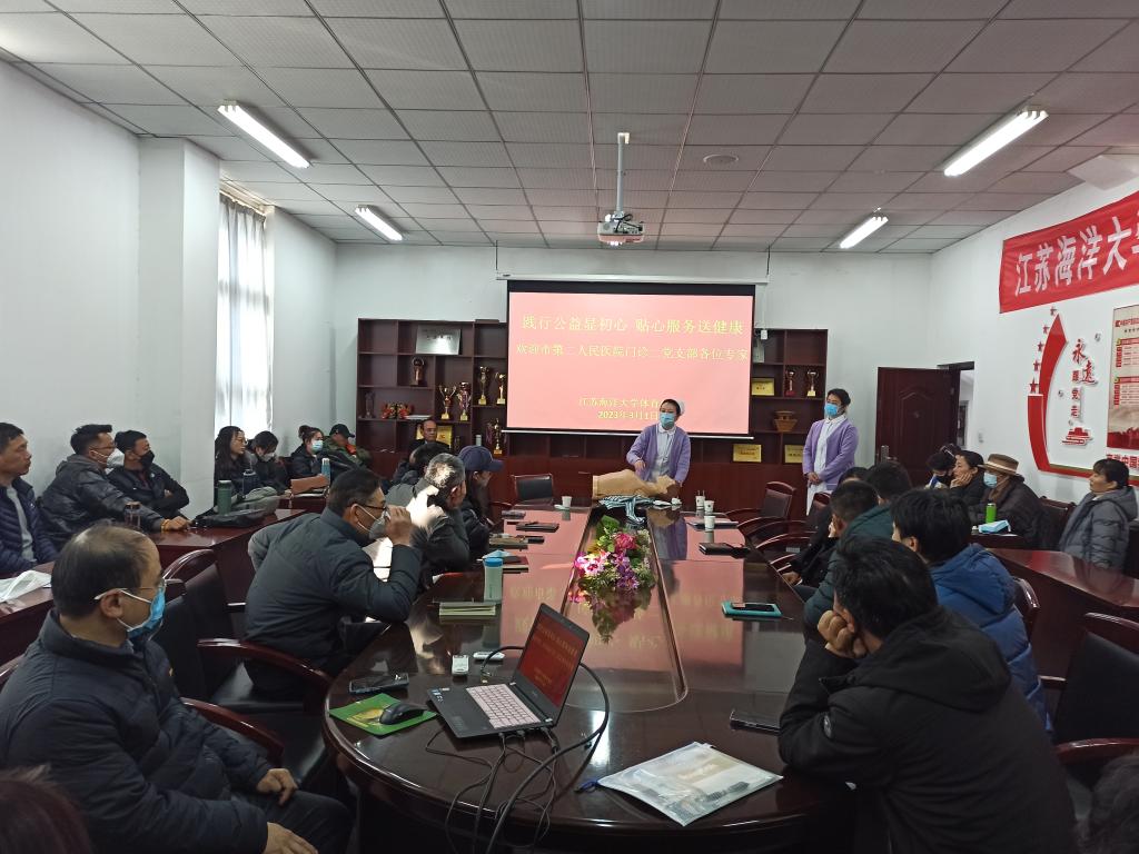 3月1日下午,连云港市第二人民医院门诊二党支部书记张琳一行四人受邀到我院开展“践行公益显初心 贴心服务送健康”急救培训及健康知识讲座。体育学院全体教师聆听了讲座。