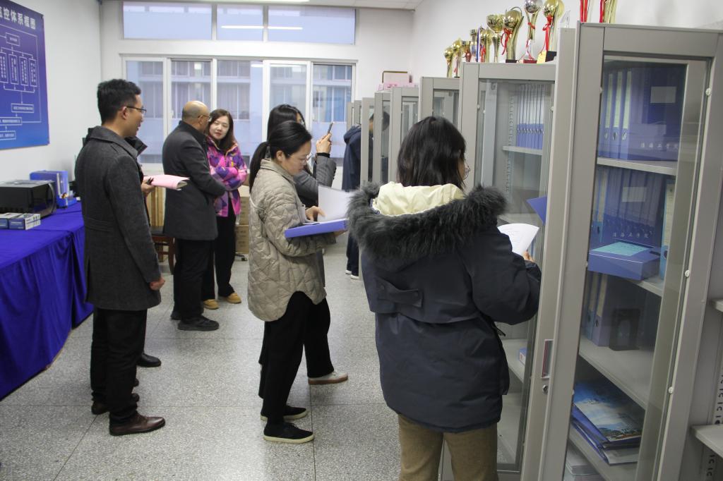 会后,朱辉生一行查阅了工程教育专业认证的附录和索引材料以及学院文化墙建设。