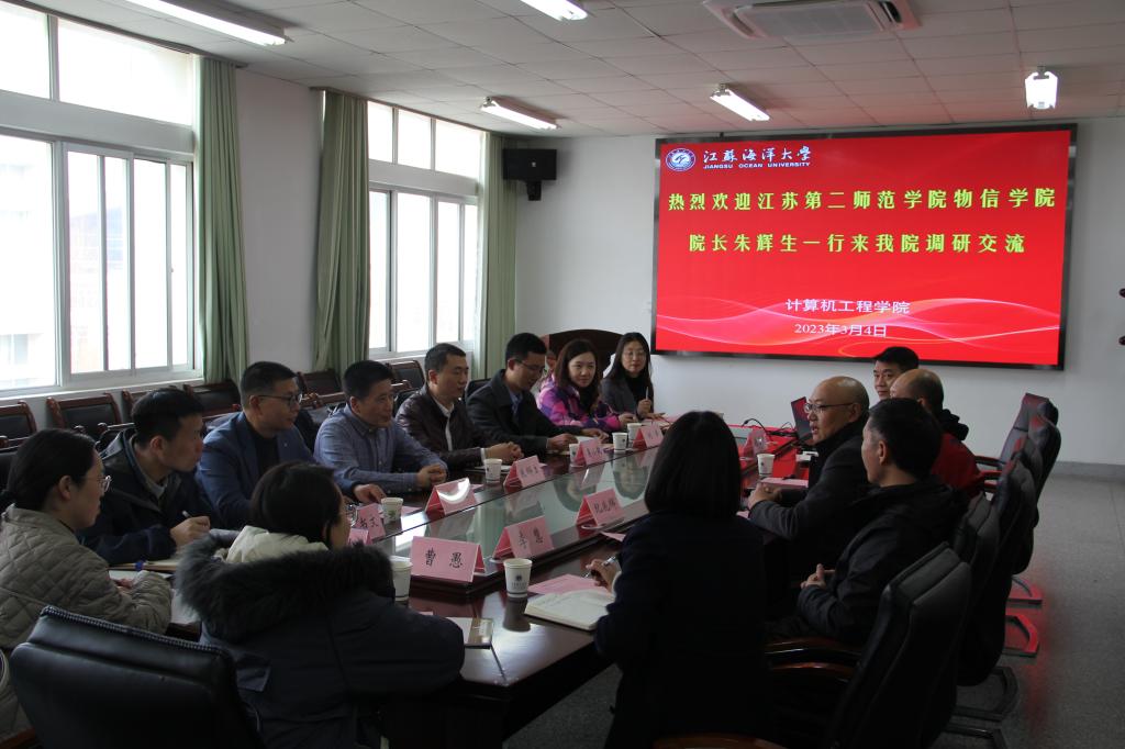 仲兆满代表计算机工程学院对朱辉生一行的到来表示热烈的欢迎,并介绍了学院在教学、科研、师资队伍、学科建设、人才培养、社会服务、一流专业建设等方面所取得的成绩及学院高质量发展方面的目标和举措。朱辉生代表江苏第二师范学院物理信息学院介绍了院系发展沿革以及学科专业建设和人才培养方面的情况。仲兆满表示,作为省内高校的兄弟学院,江苏第二师范学院物理信息学院在基础教育大数据平台、国家一流专业建设和创新人才培养方面有着丰富的资源与经验,希望双方今后进一步加强沟通交流,拓展合作空间。