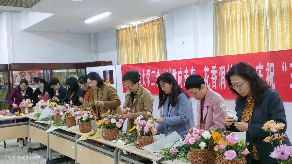 为展示女职工靓丽风采,凝聚“她”力量,3月7日下午,校工会在兴海楼二楼举办“优雅向未来花香润校园”庆祝“三八”妇女节活动。校女工委员及女职工代表近30人参加活动,校党委副书记李梅英出席活动并致辞。
