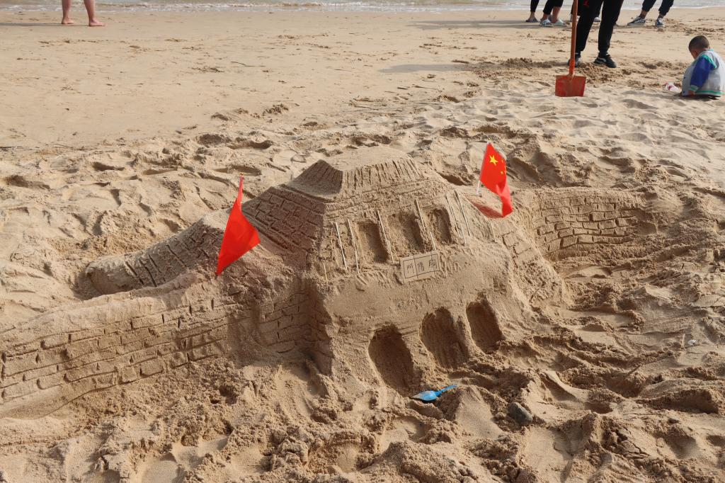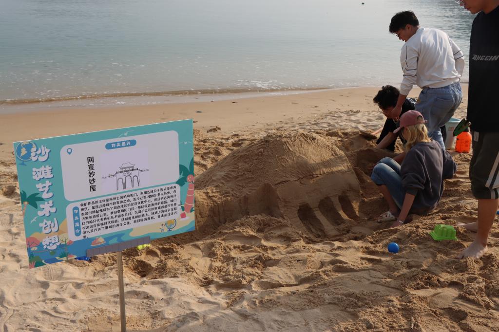 当天清晨,学院团学组织共106人前往西墅海滩,各组织发挥优势分工协作,有条不紊开展相关活动的组织及实施。活动共组建了十二支沙滩艺术创想小队,他们就地取材,利用脚下的细沙、贝壳、彩石,用砂石雕塑着独特的艺术创想。很快,可爱的“派大星”、调皮的“海绵宝宝”、威风的大鲨鱼、幽幽海边古堡、海州古城墙等形象呈现在观众面前,成为海滩边上一道独特的风景线,引路人纷纷驻足拍照。水族协会在活动现场精心制作了22个微型生态瓶,微生态美景展现了同学们对海洋的遐想、呈现了海洋生态文化的独特魅力,得到现场观众们称赞。