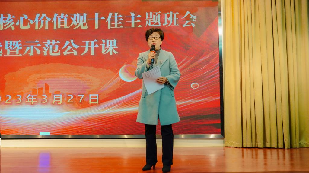 李梅英对各参赛队伍的表现予以点评。她指出,各学院展示的主题班会立意鲜明、形式新颖、内容丰富,以学生喜闻乐见的形式生动地诠释了社会主义核心价值观,具有很强的示范推广价值。她强调,学校高度重视大学生社会主义核心价值观教育工作,连续三年将该工作列入学校年度党政重点工作,青年学生应当以社会主义核心价值观作为基本遵循,做社会主义核心价值观的坚定信仰者、积极传播者和模范践行者,真正将社会主义核心价值观融入到学习、生活、实践各方面。