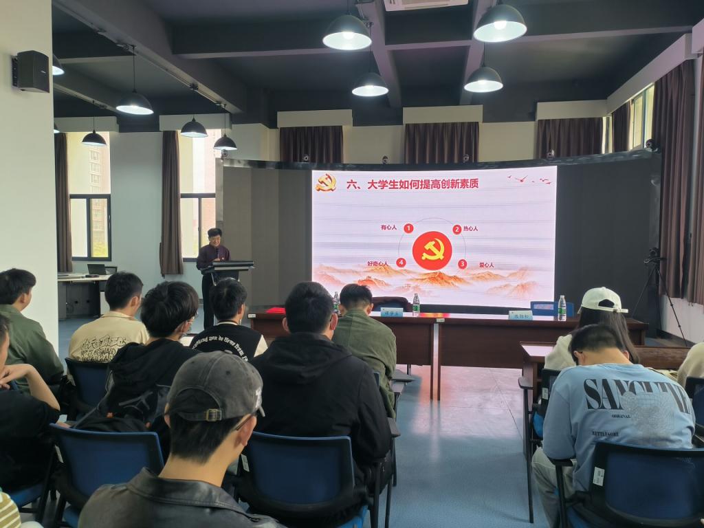 王强周做“发扬五种精神 争当五个标兵—让党旗在生产一线高高飘扬”主题讲座。他分享了自己在江苏东浦管桩公司机修车间机修班的工作经历,工作中他勤记学习笔记,常请教机电工人,积极投入公司的技术改革,并带头成立劳模创新工作室,获得全国建材革新技术奖项,申请并获得十项国家专利。他鼓励同学们勇于探索,积极实践,在劳动中启迪智慧,争优创优。