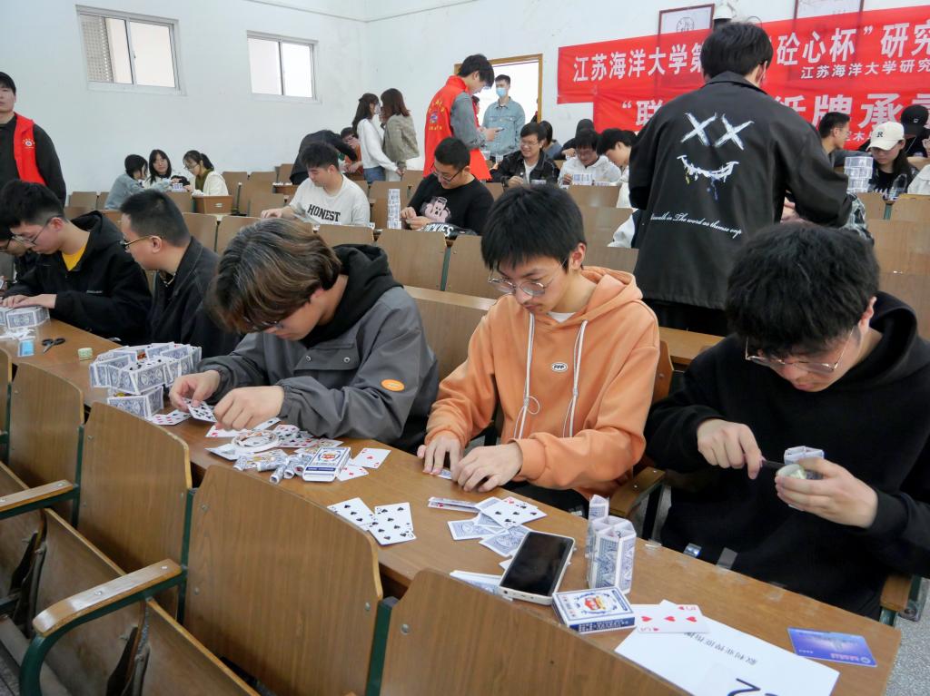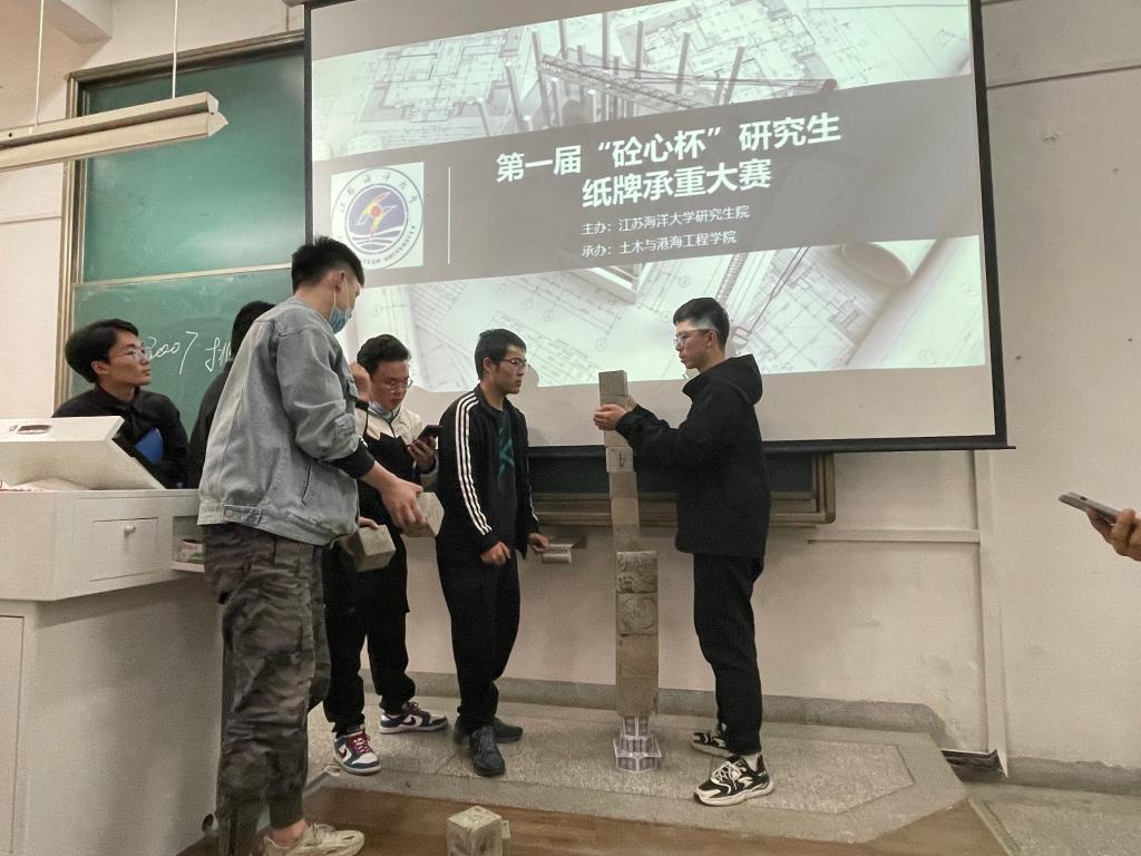大众创业,万众创新。为积极响应国家号召,打造校园里的创新环境,激发同学们的创新活力,4月16日,江苏海洋大学第一届“砼心杯”研究生纸牌承重大赛于文通楼124成功举办。本次大赛的主题为“纸牌创想 结构筑梦”,由江苏海洋大学研究生院主办,土木与港海工程学院承办。大赛形式为参赛选手使用纸牌、胶带现场搭建可承重创新结构,意在为各学院学生搭建一个理论联系实际的动手实践平台,以进一步培养和提升学生的创新思维和学习兴趣,丰富校园文化生活。