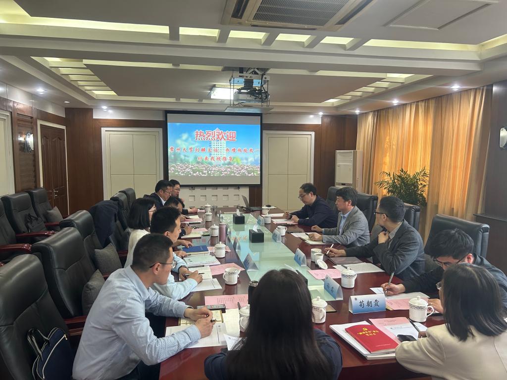 4月18日下午,我校学科建设办公室邀请常州大学学科建设办公室刘麟主任,科学技术处乔增伟处长一行来校交流指导,校学科建设办公室主任董志国主持会议。人事处、教务处、财务处等部门负责人以及博士学位培育学科所在学院负责人参加会议。