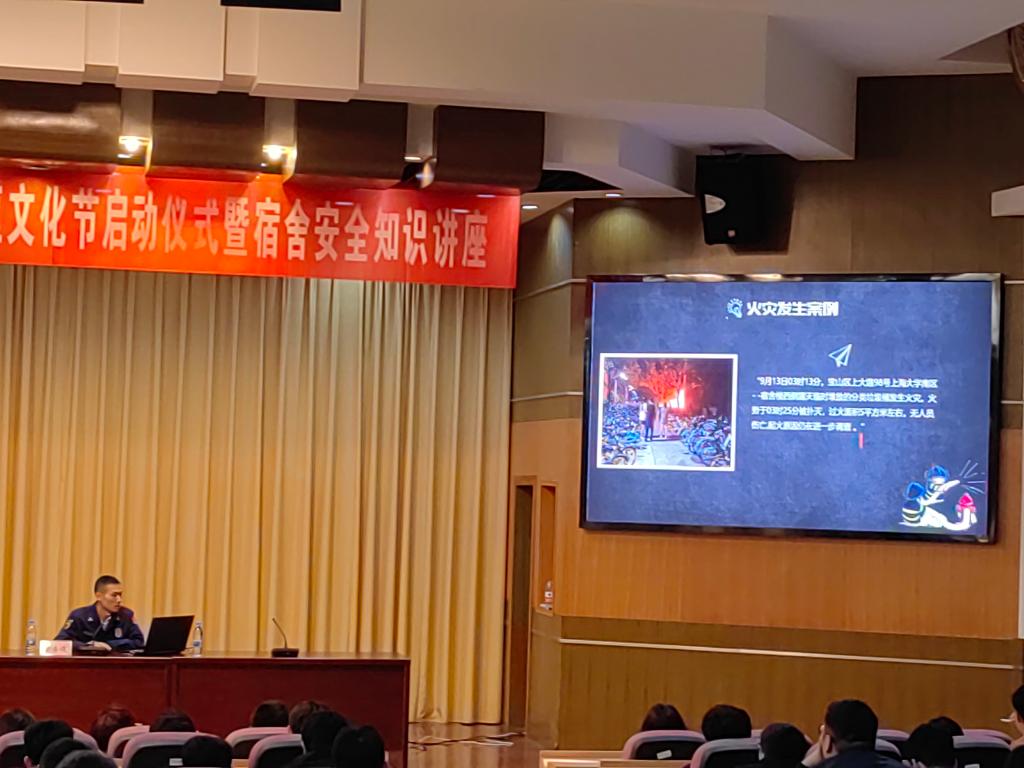 4月26日下午,环境与化学工程学院在文博楼报告厅举办了首届“一站式”学生社区文化节启动仪式暨宿舍安全知识讲座。学生工作处副处长张志浩、学院党委副书记王静、专业辅导员王学梅、苏成兄出席本次活动,学院各班级生活委员及宿舍长参加会议。
