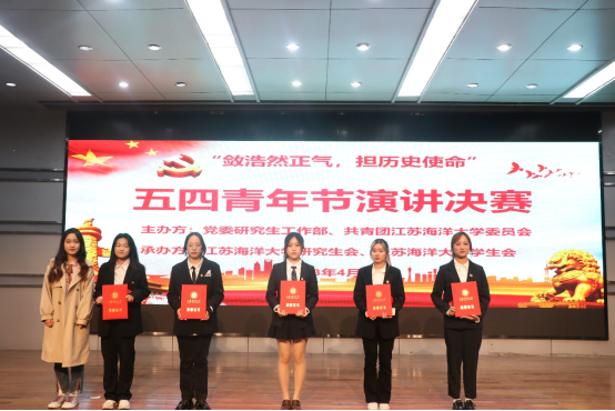 为迎接即将到来的五四青年节,让青年们进一步明白自己的历史使命,促进学生们努力奋进、心存浩然、勇于担当,4月25日晚上,由党委研究生工作部、共青团江苏海洋大学委员会主办,校研究生会、校学生会承办的“敛浩然正气,担历史使命”五四青年节演讲大赛决赛在艺术楼报告厅隆重举行。校党委常委、宣传部部长杨雪英,党委研究生工作部部长、研究生院院长陈书法,党委学生工作部部长、学生工作处处长、人民武装部部长陈德翼,校团委书记黄吉庆,校研究生会主席程钰和校学生会主席夏玥出席本次活动。部分青年教职工、研究生和本科生代表观看比赛。