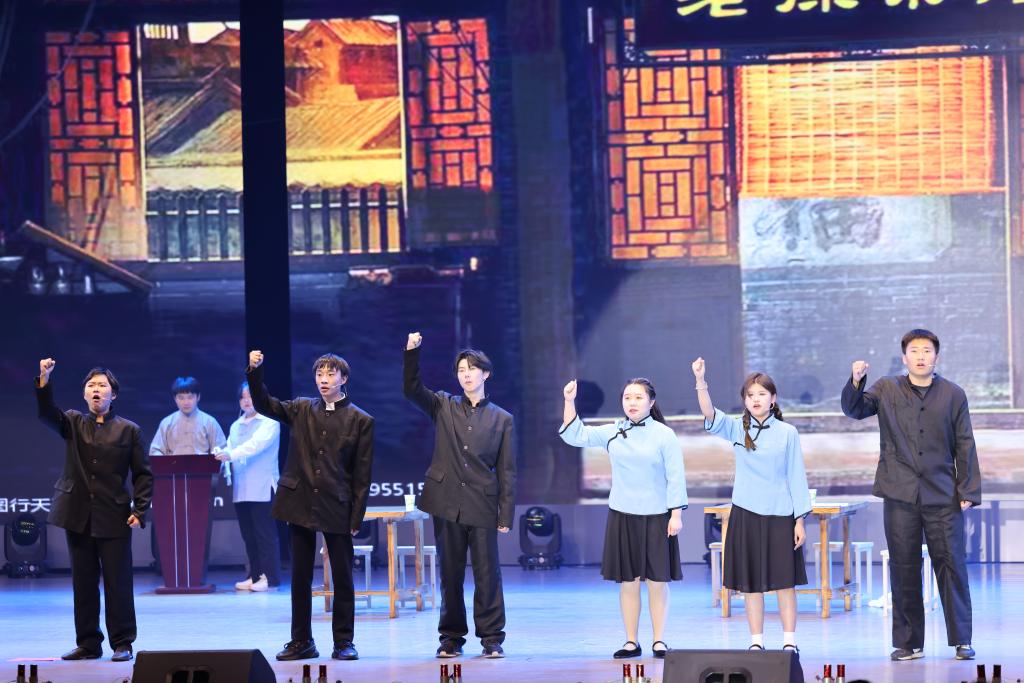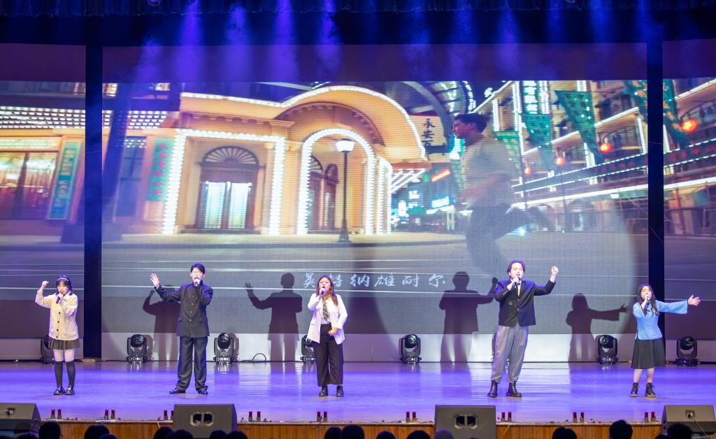 此次音乐思政课根据中国共产党的历史发展脉络,分为“开天辟地”“改天换地”“翻天覆地”和“感天动地”四个篇章,将党和国家不同发展阶段的重大事件以宣讲、朗诵、歌曲、舞蹈等形式呈现出来。