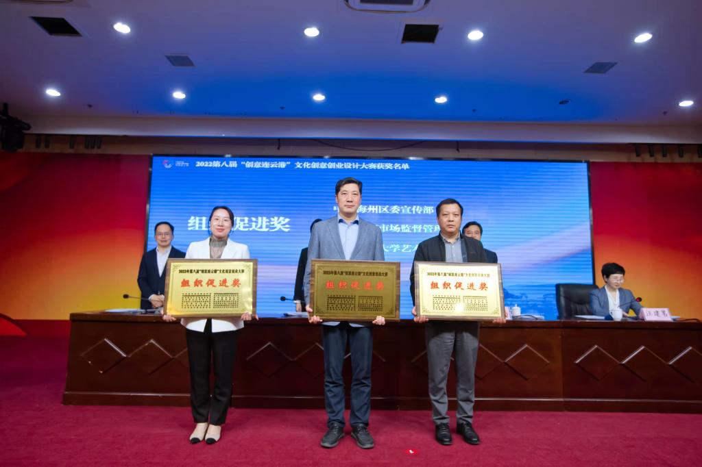 在过去的一年里,艺术设计学院积极参与连云港市的文化产业建设。与市委宣传部共建连云港市文化融合协同创新中心,配合市委宣传部开展“创新传承节气文化 展现港城四时之美”项目建设,此项目获全省宣传思想文化工作创新奖;与江苏东海水晶产业发展集团有限公司共建水晶产业学院;与海州文旅集团、西游文旅集团签订合作框架协议,进行项目开发与合作;组织师生积极参加第八届“创意连云港”文创大赛。在此届大赛中,艺术设计学院获第八届“创意连云港”文创大赛组织促进奖;在设计作品上,获金奖1项,银奖1项,铜奖5项,优秀奖15项。