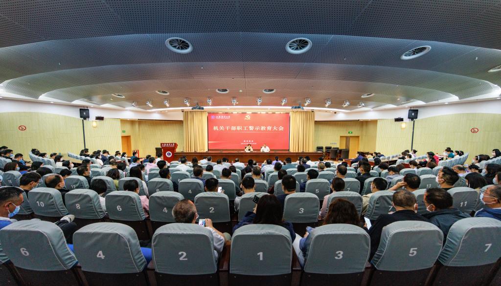 为深入学习贯彻党的二十大精神和二十届中央纪委二次全会精神,进一步推进机关党风廉政建设,不断强化机关干部职工廉洁自律意识,5月18日下午,机关党委在会议中心黄海厅召开机关干部职工警示教育大会。校党委副书记李梅英,校党委常委、党委组织部部长、党校副校长、党委统战部部长纪延光,校党委常委、党委宣传部部长杨雪英出席会议,机关各部门负责人、各党支部书记以及机关全体党员、教职工参加会议。会议由机关党委书记兼党委组织部副部长韩振响主持。