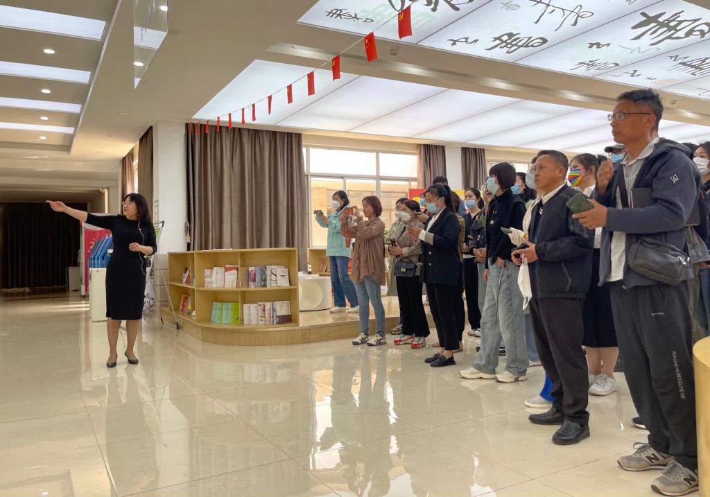 为深入贯彻落实党的二十大报告关于“深化全民阅读活动”要求,充分发挥我校图书馆在全民阅读文化阵地中的功能和优势,5月22日上午,连云港市教育管理信息中心副主任仲召兵带领市内中小学图书馆的50余名老师来我校参观学习,图书馆党总支书记艾华、副馆长胡昌芹全程陪同接待。