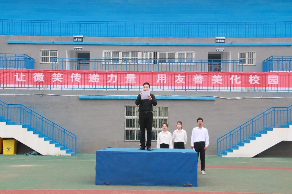5月24日上午,我校在苍梧校区东体育场举行“让微笑传递力量,用友善美化校园”主题升旗仪式,副校长朱国军出席活动,理学院、机械学院、创新创业学院、电子工程学院1000余名师生参加,电子工程学院辅导员于子程主持升旗仪式。