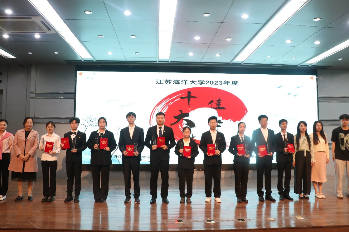 经过评委们的打分,加上前期线上投票的分数,海洋科学与水产学院高亚楠、创新创业学院王永祥、应用技术学院钱汶欣、理学院朱耀辉、文法学院季玮、商学院韦梦帆、艺术设计学院张子恒、海洋工程学院蔡文秀、土木与港海工程学院陶士恒和环境与化学工程学院赵英豪十位同学获得我校“十佳大学生”称号。