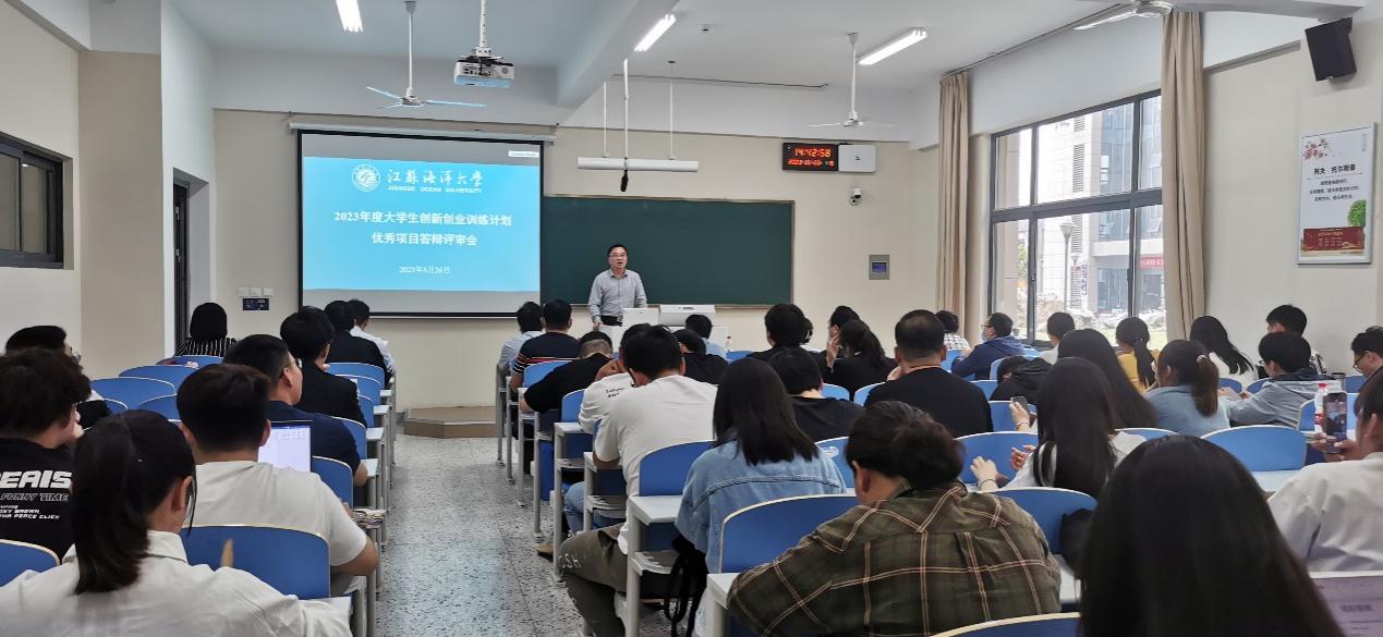 5月26日,江苏海洋大学2023年度大学生创新创业训练计划优秀项目答辩评审会在苍梧校区文华楼举行。44项候选优秀项目参加现场答辩。答辩评审会由教务处副处长祝春水主持,副校长严云洋到场指导。