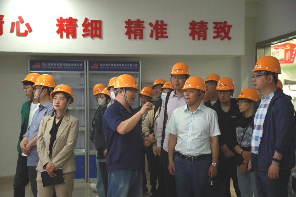 走访调研中,连云港杜钟新奥神氨纶有限公司总经理张斌、华海诚科新材料有限公司董事长韩江龙分别从公司发展历程、产品运营、科研项目合作等方面作了详细介绍,并带领学院师生参观了企业的产品展厅和生产车间。实地参观结束后,学院师生分别参加了校企合作交流会和企业招聘宣讲会。