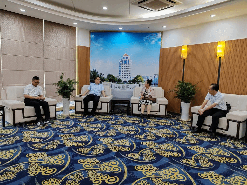 会前,副校长申欣在会客厅接待了省工信厅服务体系建设处处长韩晶、连云港市工信局副局长孙和卫一行。