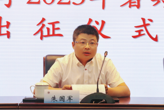 副校长朱国军在动员讲话中对长期以来关心支持社会实践工作的老师表示衷心的感谢,对即将奔赴全国各地参加社会实践的全体同学致以美好的祝愿。针对2023年暑期社会实践活动,朱校长提出四点要求:一是要紧扣主题,力求实效,引导青年学生在深入探访中厚植家国情怀,在学思践悟中砥砺报国之志;二是要学用结合,锤炼本领,念好学校“有字之书”和社会“无字之书”,真正实现“服务他人、锻炼自我”的双重目标;三是要加强宣传,注重转化,不断扩大学校社会实践影响力和覆盖面;四是要筑牢底线,慎于安全,确保实践活动安全有序开展。