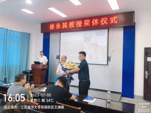 7月5日下午,商学院全体教师汇聚一堂,为奋斗在教学一线38年的徐永其老师举办荣誉退休仪式,学院党委书记万金店主持仪式。商学院院长孙军发表致辞,他回顾到:徐老师是学校建校之初就来到淮海园任教,见证了学校及学院在芦苇荡上艰苦奋斗、发展壮大的全过程,三十多年来,徐老师坚守三尺讲台,潜心科研,培养了很多优秀人才,为学院发展做出了重大贡献,是良师,是益友。