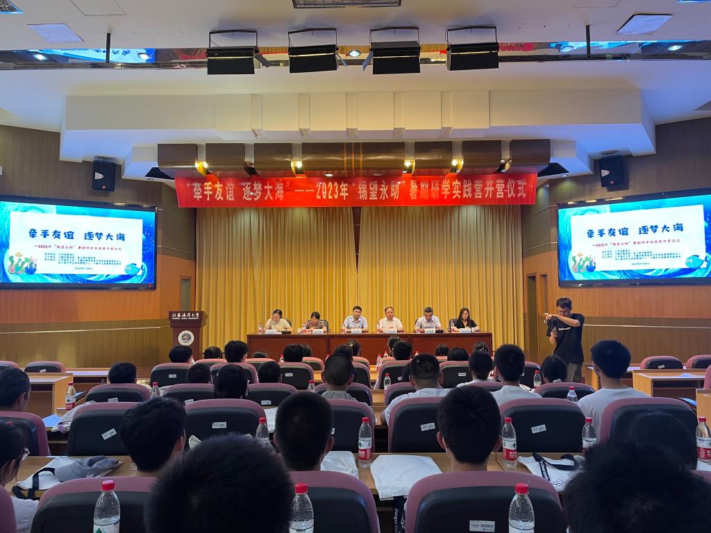 江苏省学生资助管理中心徐跃老师向参与此次活动的学生介绍了国家资助政策体系,希望同学们在活动中加强交流,相互学习,感恩并珍惜国家、学校及老师提供的这次研学机会,收获更好的成长。校学生工作处处长陈德翼在开营仪式上致欢迎词。他代表学校向参加此次研学实践营活动的老师和同学们表示热烈欢迎,希望同学们在我校充分体验海洋文化内涵、感受海洋科技魅力、爱上海洋世界,在活动中树立海洋强国的远大理想。
