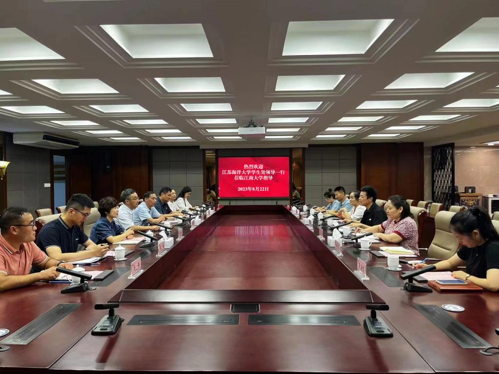 8月22日下午,由学生工作处处长陈德翼带队,处一行8人赴江南大学就相关学生工作开展调研交流。江南大学学生工作处处长周伟涛、副处长蒋洁及各科室负责人出席本次交流会。