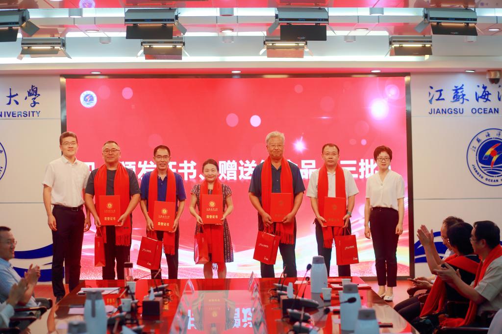 颁发证书环节中,钱汉珍、朱传云为退休教师吴建新、李永华、孙虹颁发荣休证书,宗钟凌、钱汉珍、朱传云为2022年从教三十年教师田安国、张三柱、胡杰、顾炳伟、杨俊华,2023年从教三十年教师李新华、李家元、苗克芳,颁发荣誉证书。同时,学院还为这些老教师们赠上了代表红红火火、福气满满的大红围巾和纪念品。