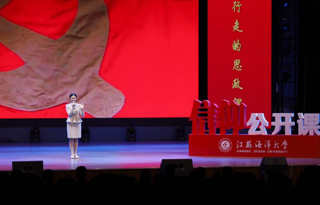 9月17日,江苏海洋大学开展了一堂爱国教育主题信仰公开课。全校1300余名新生聚集在此,通过聆听红色故事、情景思政课、朗诵、歌曲等方式,共同铭记历史,缅怀先烈。