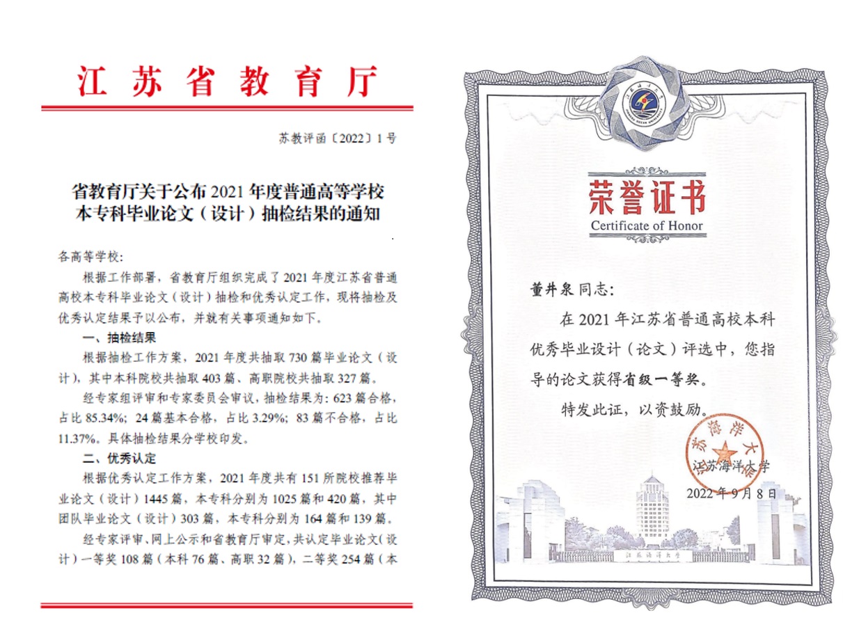 本科优秀毕业论文省级一等奖
