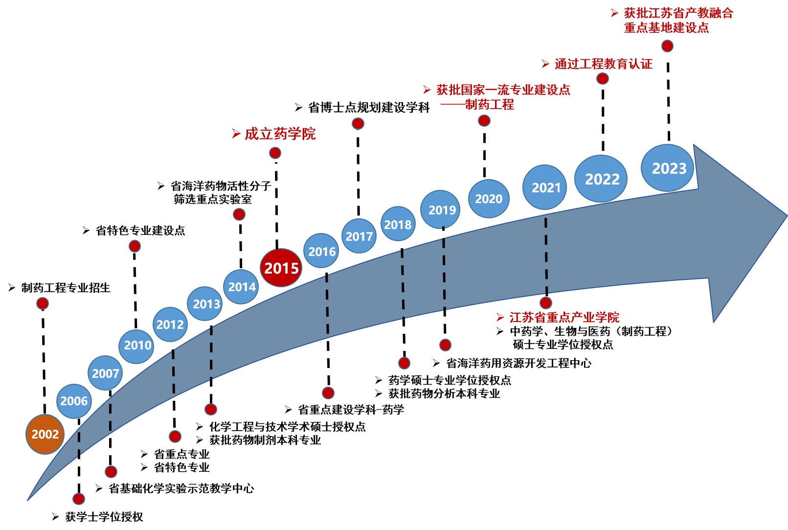 充分发挥党组织战斗堡垒作用和党员的先锋模范作用,落实党支部书记“双带头人”制度,团结带领党员骨干奋战于“省重点学科、博士点创建学科、国家一流专业、省重点产业学院、国家级科研项目”等重大事项一线,取得了优异成绩。五年间,药学学科顺利通过省“十三五”重点建设学科验收并获批省“十四五”重点学科。制药工程专业获批国家一流本科专业建设点并顺利通过教育部工程认证,药物制剂专业获批省一流本科专业建设点,申报获批药物分析新专业并顺利完成学士学位授予权评审和新专业评估工作。2021年成功申报了江苏省重点产业学院-生物医药产业学院,并与恒瑞医药、原创药物研发公司联合申报获批江苏省产教融合型品牌专业和江苏省产教融合重点基地建设点。2018年获批药学专业硕士学位授权点,2021年获批中药学、生物与医药(制药工程)专业硕士学位授权点。学科专业持续发展,为培养高水平应用研究型专业技术人才提供保障。