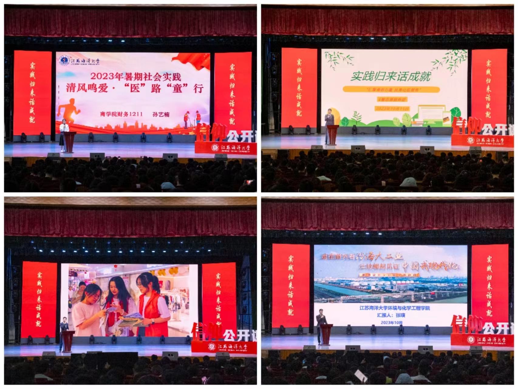 为充分发挥先进典型的示范带动作用,鼓励更多大学生投身社会实践,10月11日,我校在苍梧校区大礼堂举办“实践归来话成就”专题信仰公开课。公开课由4名暑期社会实践团队学生负责人主讲,校团委全体人员、各学院团委负责人和千余名学生参与活动。